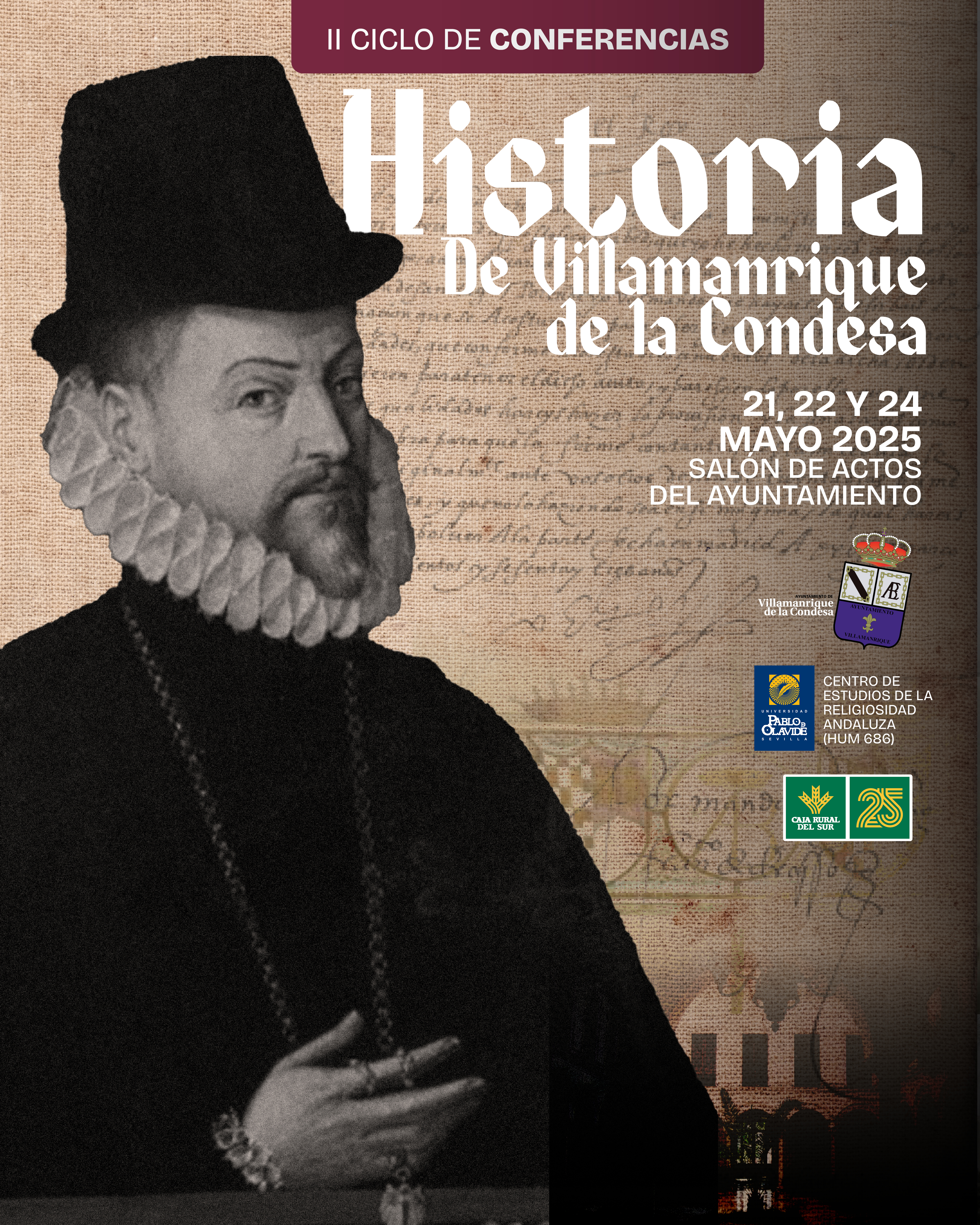 Villamanrique de la Condesa volverá a mirar a su pasado con motivo de la celebración del II Ciclo de Conferencias sobre Historia Local, una iniciativa impulsada por el Ayuntamiento que tiene como objetivo divulgar y poner en valor el patrimonio documental, humano e histórico de nuestro municipio.