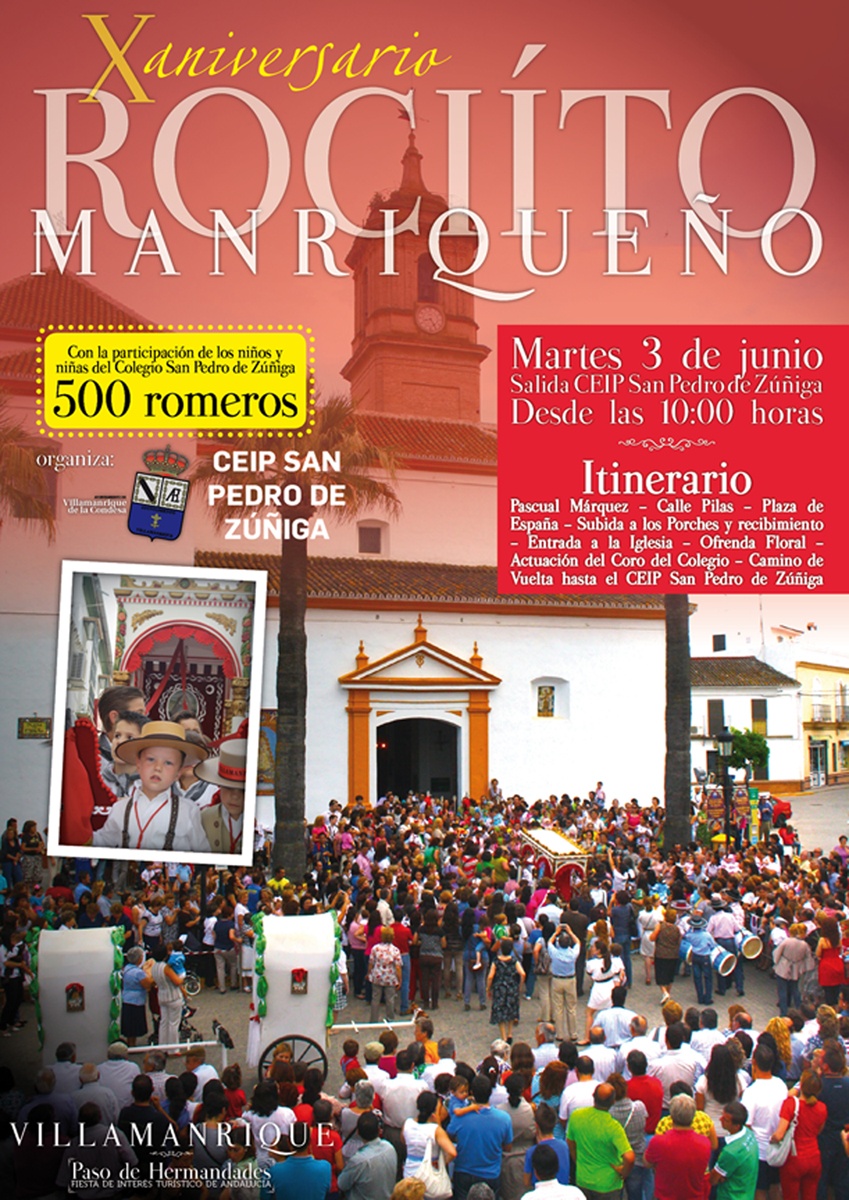 La Hermandad de los niños de Villamanrique realizará su triunfal subida a los porches el próximo martes 3 de junio en horario de mañana, mismo día que se inicia la Fiesta de Interés Turístico, Villamanrique paso de Hermandades.