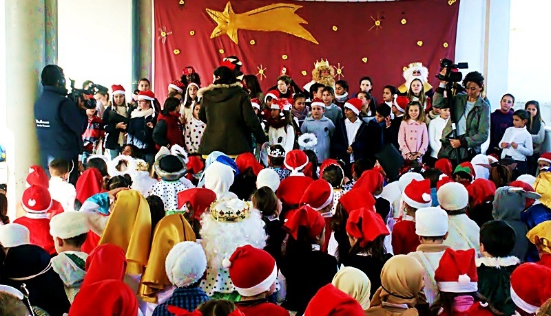 Los alumnos y alumnas entregaron sus kilos solidarios y recibieron un obsequio por parte de Sus Majestades de Oriente